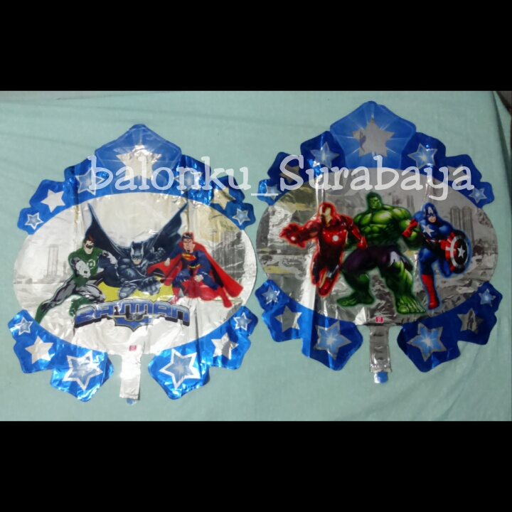 Balon Foil Karakter Avanger adalah Balon gas yang terdapat gambar Batman, Superman,dll. Balon Jenis ini sering di gunakan untuk dekorasi ulang tahun anak lang tahun tema avangers, Batman, Captain America. dan balon dekorasi di berbagai acara.