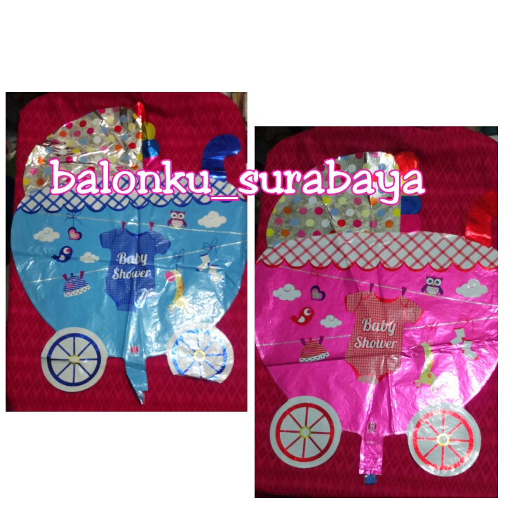 Balon foil stroller adalah Balon gas berbahan foil yang dapat membentuk kereta bayi / stroller. Balon foil stroller cocok untuk dekorasi untuk acara baby shower, tedak sinten dan turun tanah.