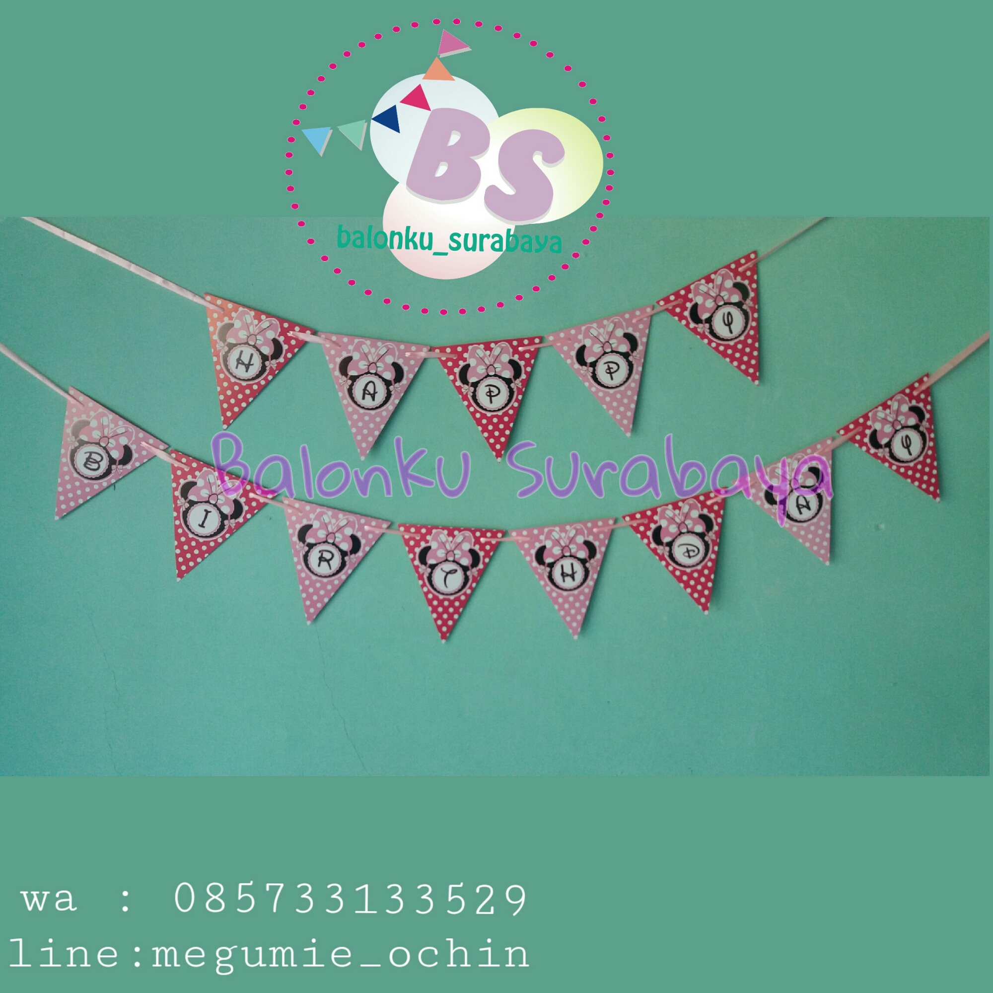 Harga bunting flag / bendera ulang tahun segitiga motif polkadot minie mouse Rp 20.000