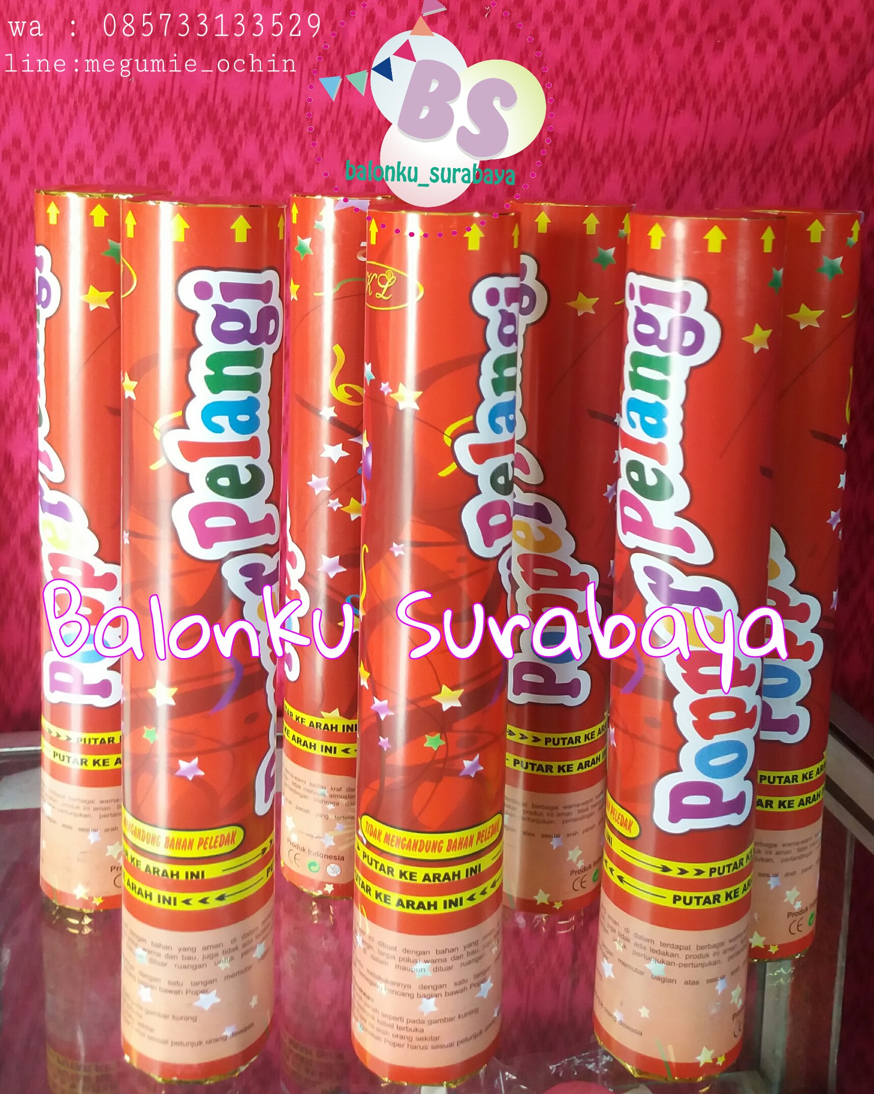 Confetti / party popper adalah salah satu perlengkapan pesta. Confetti sering di pakai untuk acara surprise party, wedding maupun acara lainnya. Confetti yang kami jual berukuran 30 cm.