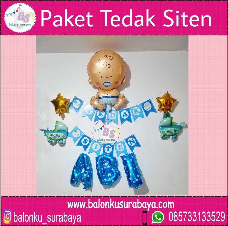 Balonku Surabaya menyediakan Paket Dekorasi Tedak Siten / Mudun Lemah / Turun Tanah yang simple dan dapat di gunakan untuk dekorasi tedak siten sendiri di rumah. Dekorasi yang simple juga menjadikan acara tedak siten anak semakin semarak. Tidak perlu tenaga professional untuk dapat melakukan dekorasi tedak siten anda pun dapat memasang dengan mudah.