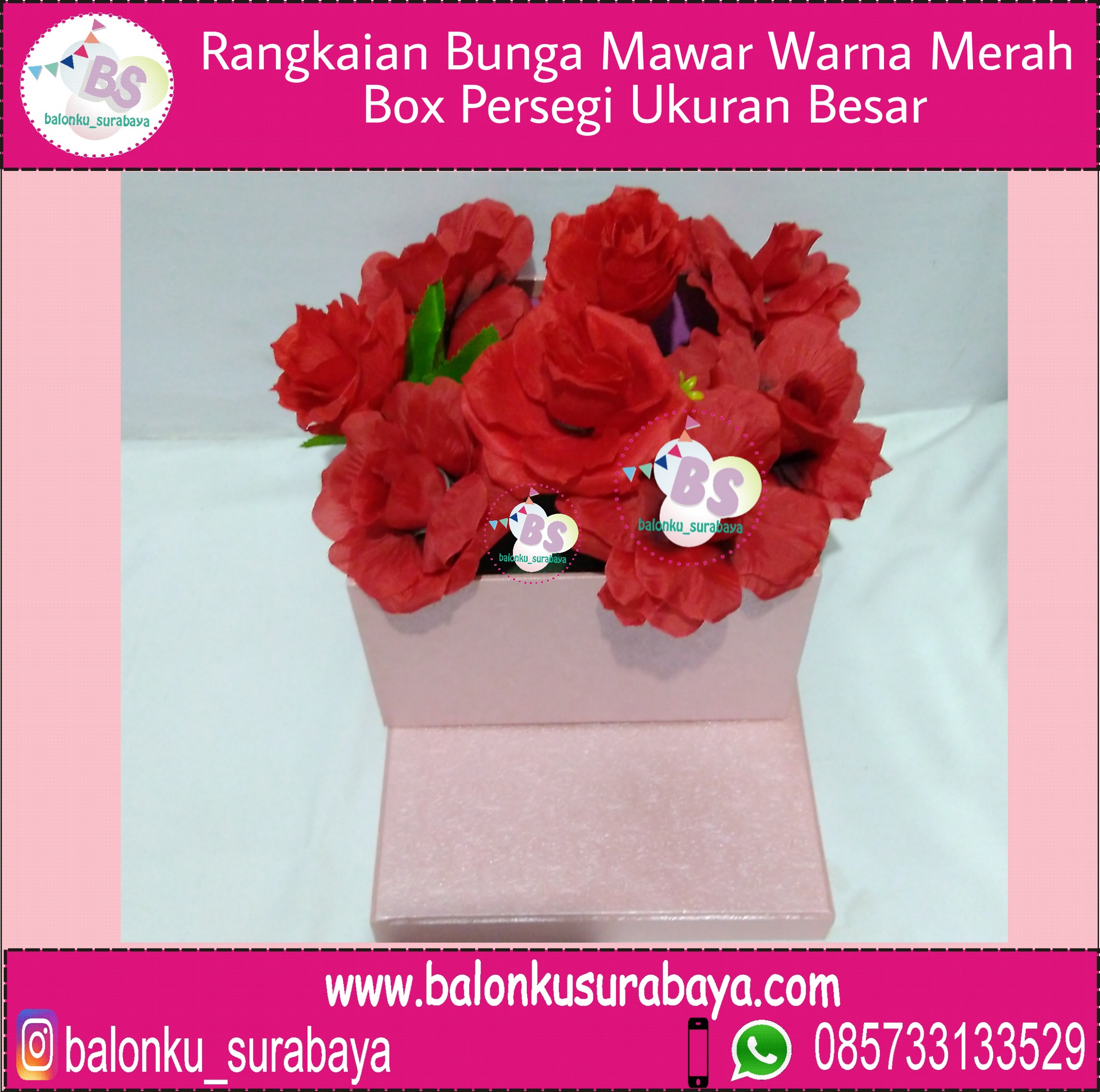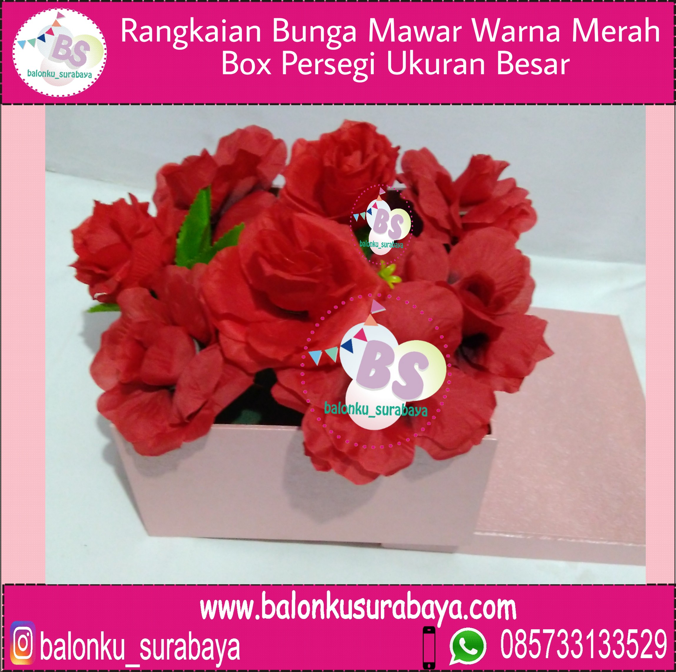 Harga Rangkaian Bunga Dekorasi Mawar Merah Box Persegi Ukuran Besar : Rp 300.000 Seperti Gambar tanpa Balon Custom