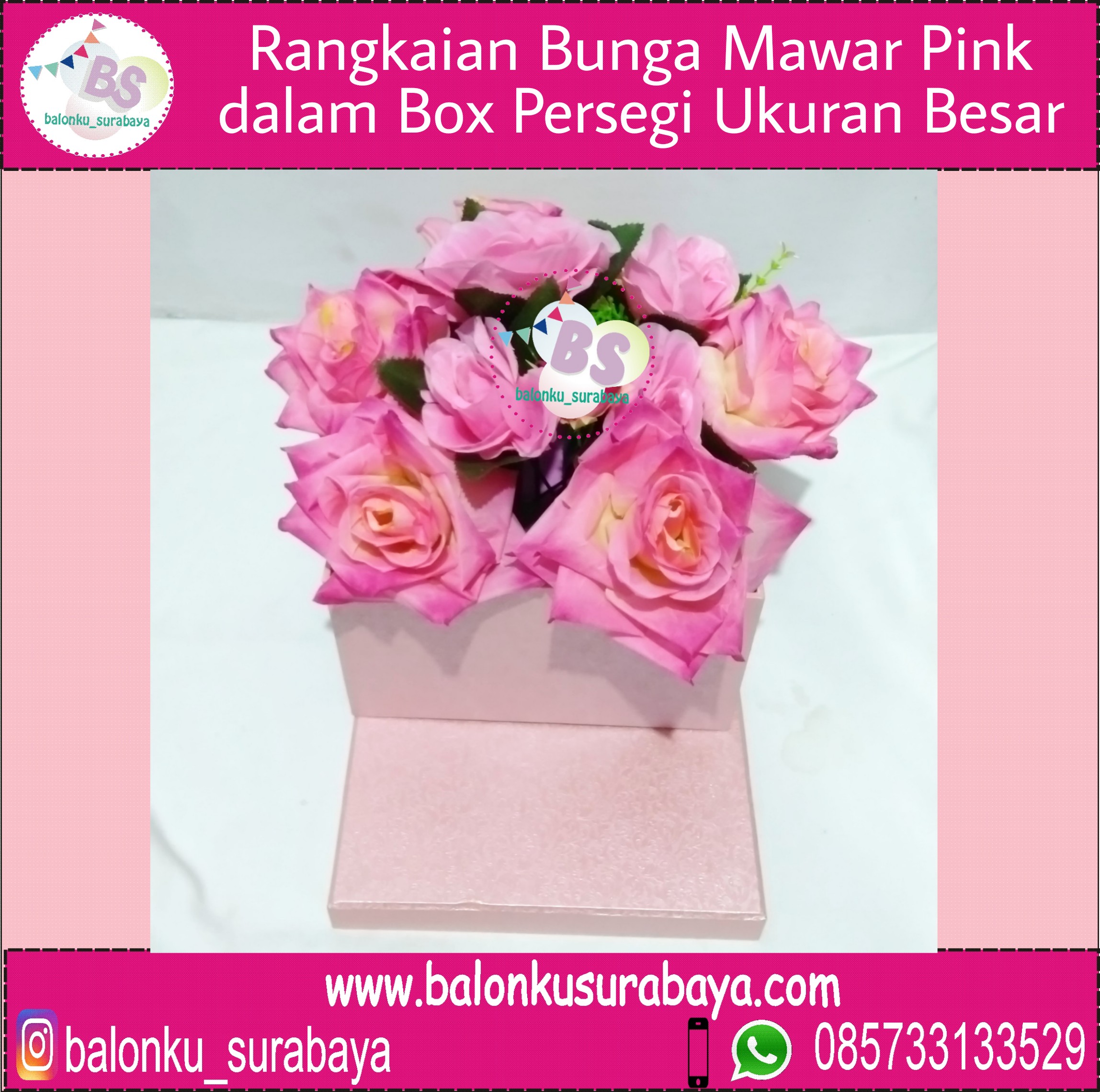Harga Rangkaian Bunga Mawar Pink dalam Box Bunga Persegi Ukuran Besar : Rp 300.000 Seperti Gambar tanpa Balon Custom