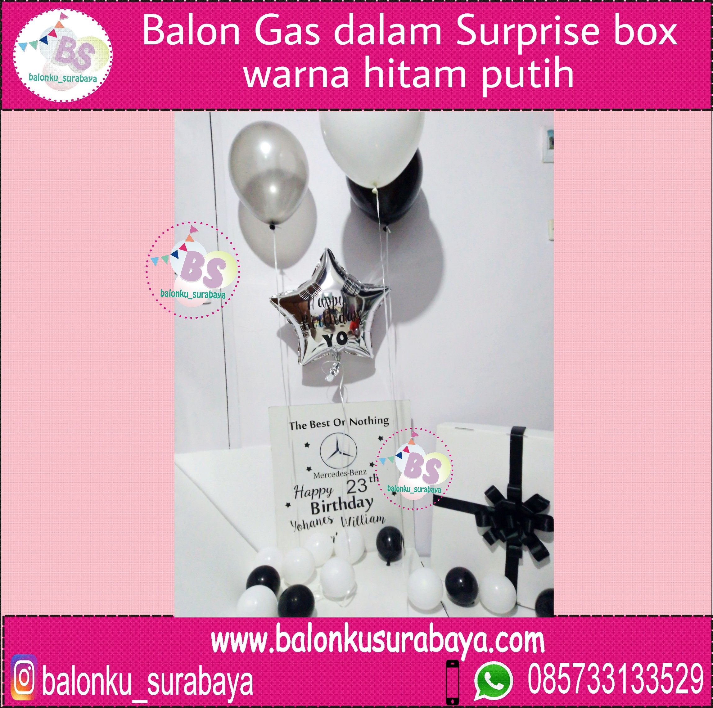 Info dan Pemesanan Balon Gas dalam Surprise Box Warna Hitam Putih