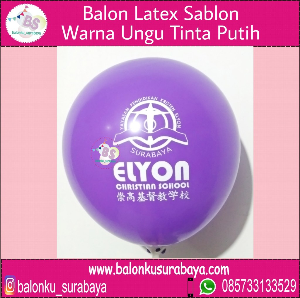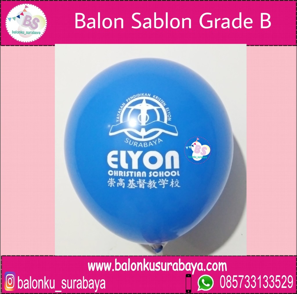 Balonku Surabaya merupakan Pusat Supplier dan Distributor Balon Sablon Murah. Balon sablon yaitu balon berbahan latex tebal dengan sablon / printing desain tertentu sesuai keinginan anda. Desain pada balon yang akan di sablon biasanya berupa logo perusahaan, logo brand, nama perusahaan, nama Instansi, nama acara. Kami dapat membuat balon sablon sesuai logo atau desain yang anda kehendaki. Balon sablon merupakan balon yang digunakan untuk media promosi perusahaannya karena harganya yang murah dan terjangkau untuk semua Sekmen pasar konsumen anda. Balon dipilih menjadi salah satu media promosi yang efektif. Balon sablon yang kami buat memiliki kualitas yang bagus. Kami menggunakan balon latex berkualitas dan dengan printing yang bagus sehingga sablon pada balon tidak pecah.