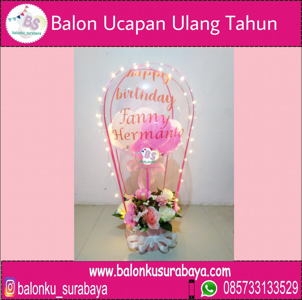 Ulang Tahun merupakan hari kelahiran seseorang. Ulang tahun merupakan moment spesial dalam kehidupan seseorang. Biasanya pada perayaan ulang tahun seseorang akan menghabiskan waktu dengan keluarga, sahabat, pacar, teman. Hadiah atau kado ulang tahun biasanya diberikan untuk seseorang yang sedang berulang tahun. Tentu anda tidak ingin melewatkan moment spesial seperti ini berlalu begitu saja. Balonku Surabaya jual parcel balon ucapan ulang tahun. Parcel balon ucapan ulang tahun dapat di berikan isian box seperti bunga artificial. Parcel balon box isi coklat dan parcel balon box isi balon love. Parcel balon ucapan dipilih karena bentuknya lucu dan unik. Kamu dapat memberikan parcel balon ucapan bunga atau bahkan kado pada isian parcel balon ucapan ulang tahun. Pada parcel balon ucapan ulang tahun biasanya di berikan tulisan happy birthday mommy , happy birthday my beloved. Anda dapat menambahkan kado ulang tahun, lampu led atau boneka pada isian parcel balon ucapan ulang tahun.