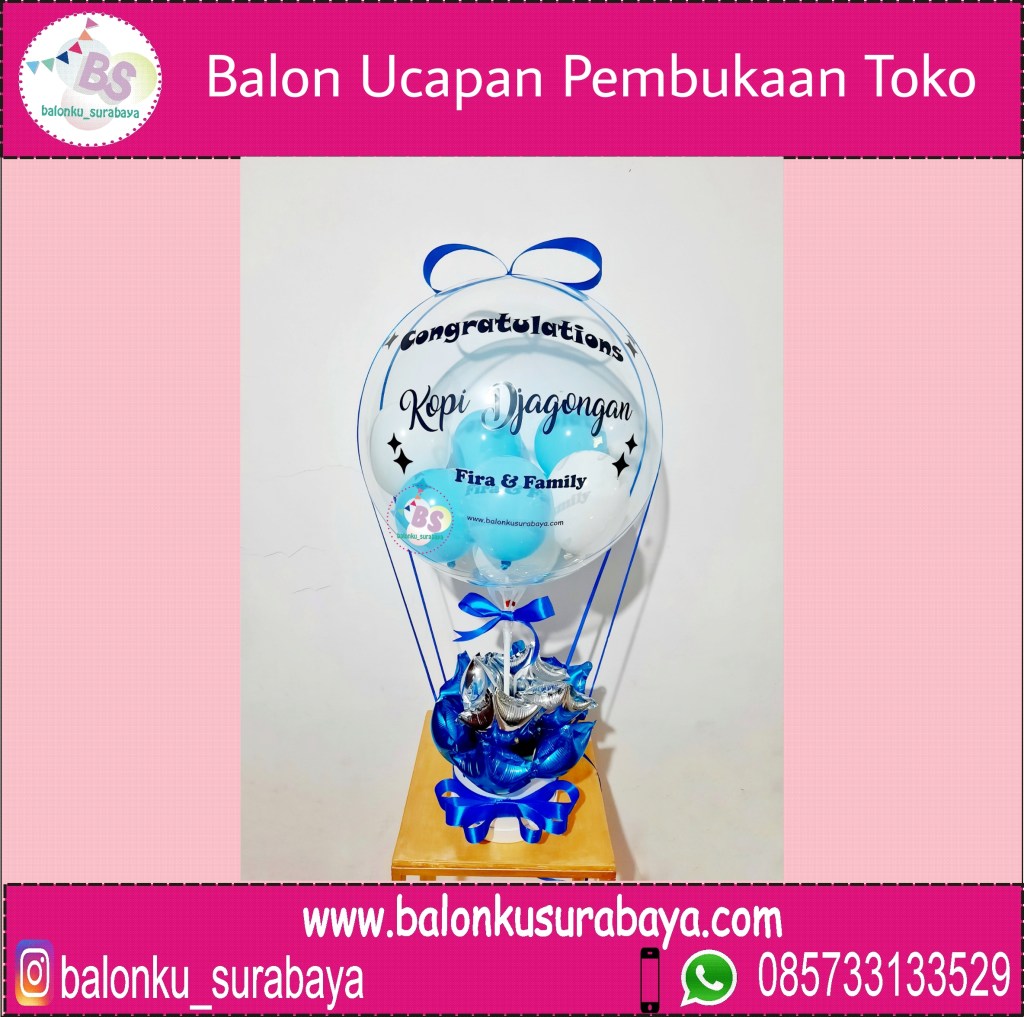 Pembukaan toko umumnya identik dengan bunga papan yang berukuran sangat besar, jika anda mencari alternative parcel balon untuk pembukkan toko berukuran kecil balonku Surabaya punya solusinya. Dengan parcel balon ucapan anda teta dapat memberikan ucapan selamat pembukaan toko pada balon seperti congratulation grand opening dan selamat dan suksesBalon Ucapan Pembukaan Toko Size S warna Biru Putih
