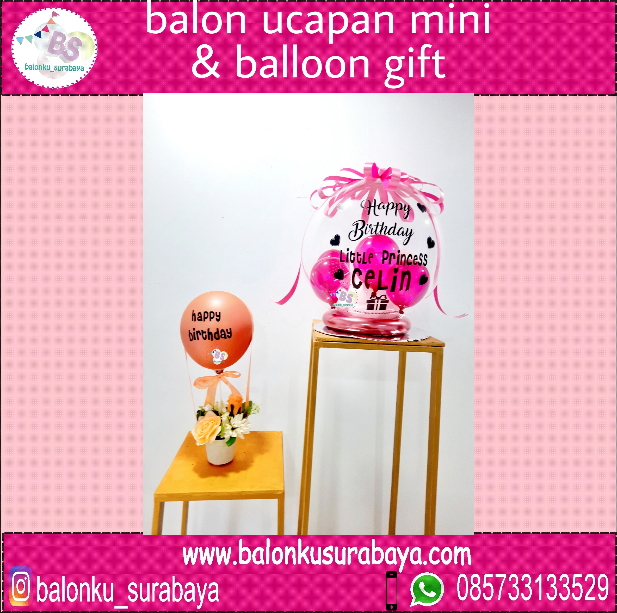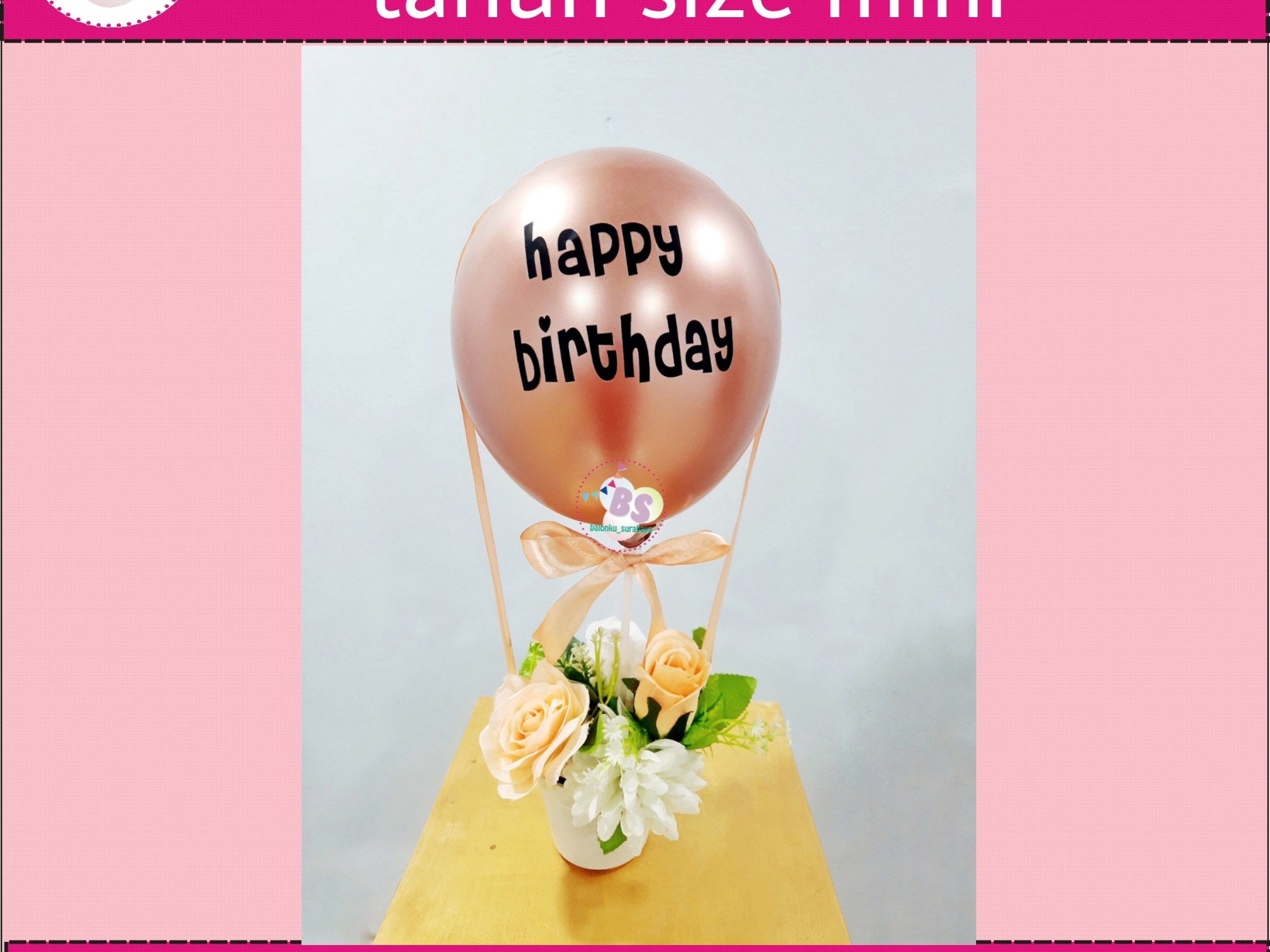 : CALLberikut contoh perbandingan ukuran balon ucapan mini dan parcel balon custom: