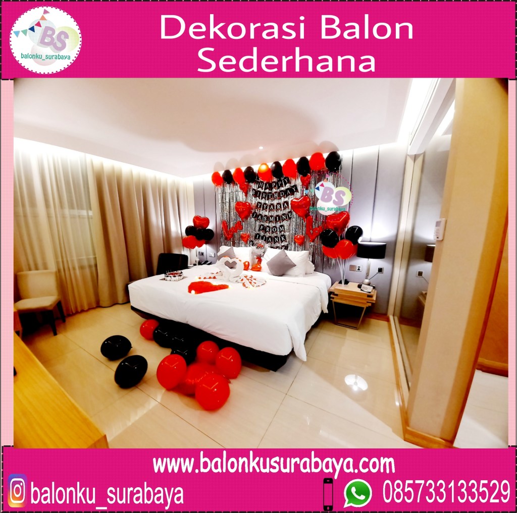 Balonku Surabaya menerima jasa dekorasi kamar hotel khusus wilayah Surabaya dan sidoarjo. Kami memiliki paket ulang tahun di kamar hotel. Dekorasi ulang tahun di kamar hotel biasanya untuk acara pesta kejutan ulang tahun, anniversary, maupun bridal shower. Dekorasi ulang tahun kamar hotel grand dafam Surabaya dapat di sesuaikan dengan keinginan anda. Misalnya untuk acara ulang tahun atau anniversary maupun bridal shower. Kami menawarkan paket – paket dekorasi ulang tahun di kamar hotel grand dafam Surabaya. Dekorasi kamar hotel grand dafam dapat di sesuaikan dengan tema warna yang anda inginkan. Dekorasi ulang tahun kamar hotel grand dafam Surabaya sederhana tetapi memiliki kesan yang romantis.