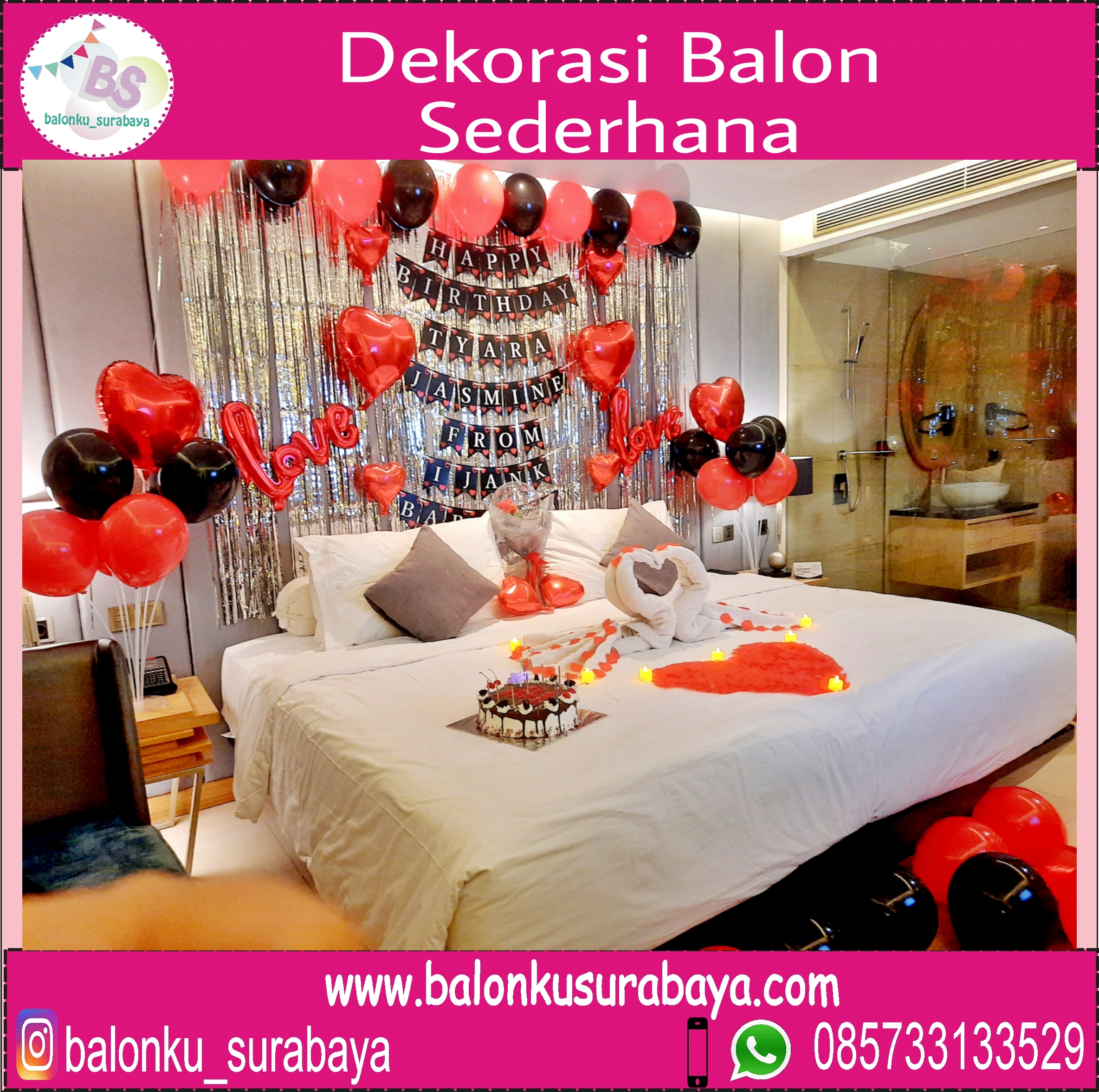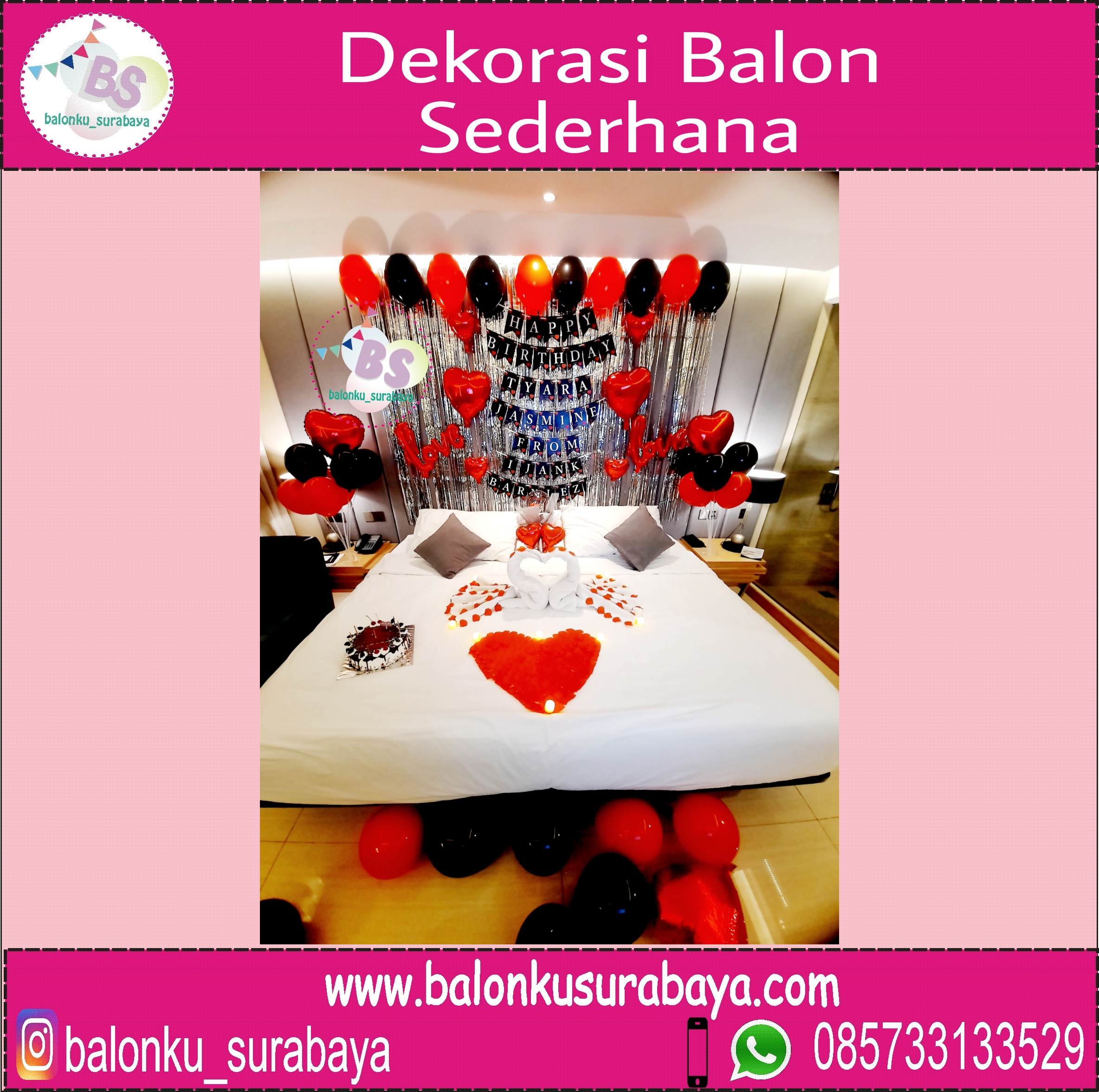 Balonku Surabaya menerima jasa dekorasi kamar hotel khusus wilayah Surabaya dan sidoarjo. Kami memiliki paket ulang tahun di kamar hotel. Dekorasi ulang tahun di kamar hotel biasanya untuk acara pesta kejutan ulang tahun, anniversary, maupun bridal shower. Dekorasi ulang tahun kamar hotel grand dafam Surabaya dapat di sesuaikan dengan keinginan anda. Misalnya untuk acara ulang tahun atau anniversary maupun bridal shower. Kami menawarkan paket – paket dekorasi ulang tahun di kamar hotel grand dafam Surabaya. Dekorasi kamar hotel grand dafam dapat di sesuaikan dengan tema warna yang anda inginkan. Dekorasi ulang tahun kamar hotel grand dafam Surabaya sederhana tetapi memiliki kesan yang romantis.