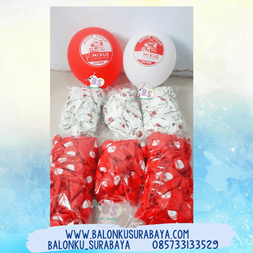Pada kesempatan kali ini klien kami adalah mixue ice cream and tea yang merupakan restoran waralaba yang berasal dari china. Mixue hadir di beberapa kota di indonesia dan sedang pembukaan atau grand opening cabang mixue di surabaya dan memerlukan balon sablon untuk acara grand opening mereka.
