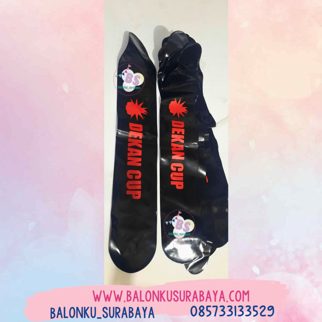 Seperti pada contoh berikut balon tepuk supporter menggunakan balon berwarna hitam dengan tulisan merah