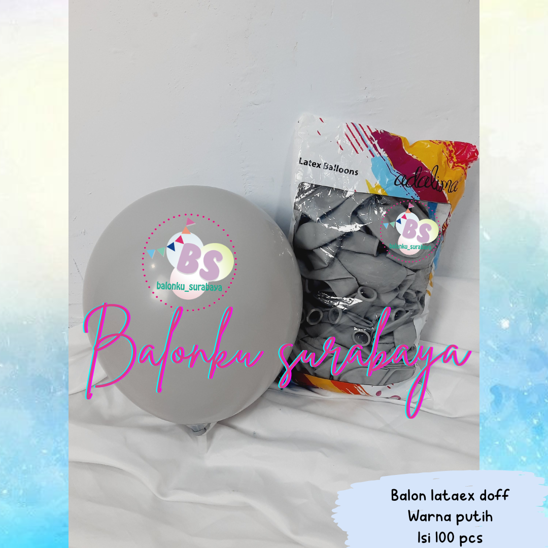 Harga balon latex doff warna abu – abu Rp 1300/ pcs minimal pembelian 10 pcs