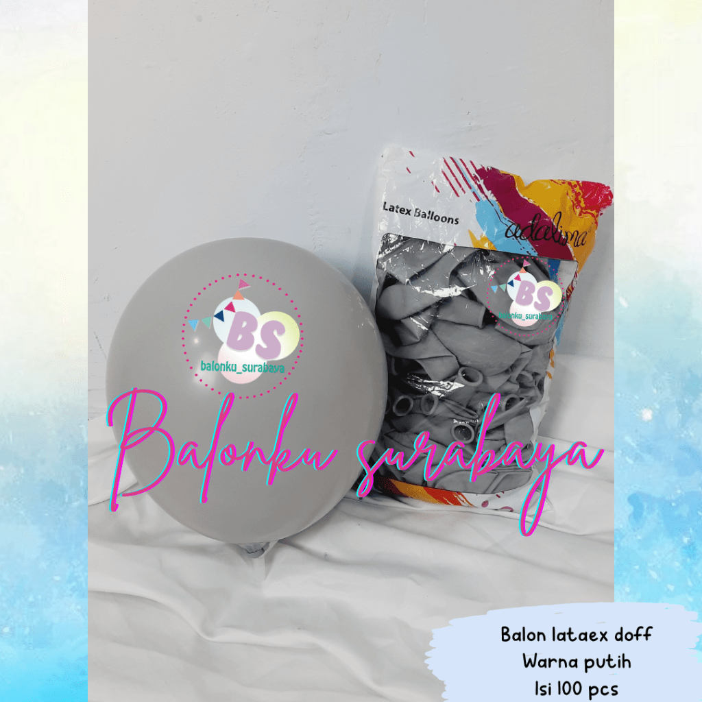 Balonku surabaya menjual Balon Latex Abu – abu merk adalima. Balon latex adalima merupakan balon latex paling tebal di pasaran Indonesia. Kini tersedia varian balon latex adalima warna abu – abu untuk kebutuhan dekorasi balon anda. Balon latex abu – abu cocok digunakan untuk semua jenis dekorasi balon baik indoor dan outdoor. Balon latex adalima memiliki keutamaan warna balon yang solid tidak tembus pandang dan karakteristik latex yagn tebal dan lentur sehingga cocok untuk kebutuhan dekorasi balon anda.