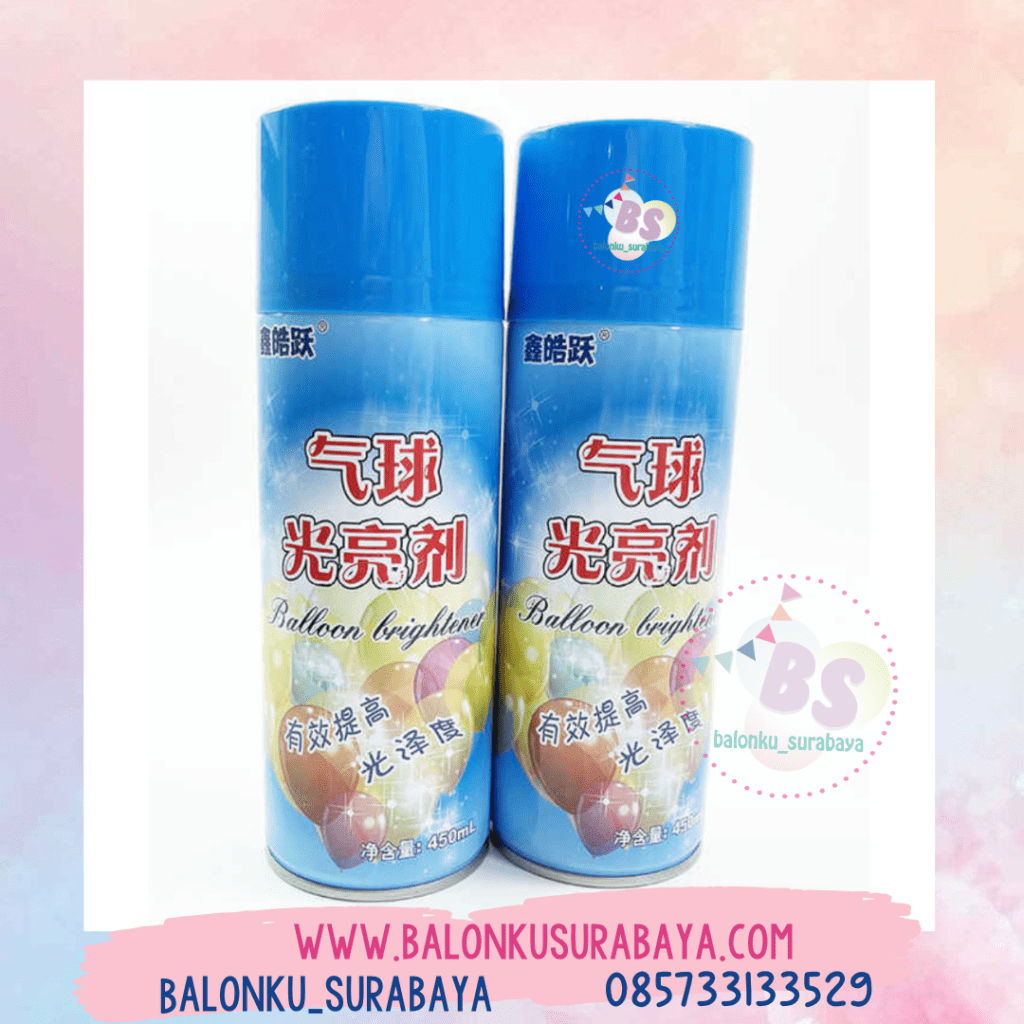 pengkilap balon dekorasi spray 450 ml adalah produk yang digunakan untuk membuat balon lebih mengkilap dan menarik perhatian. Produk ini biasanya digunakan untuk dekorasi balon. pengkilap balon dekorasi spray 450 ml berbentuk spray sehingga mudah diaplikasikan untuk dekorasi balon anda. Isi dari pengkilap balon spray adalah 450 ml. pengkilap balon dekorasi spray 450 ml dapat dikirim ke Surabaya dan wilayah di Jawa Timur.