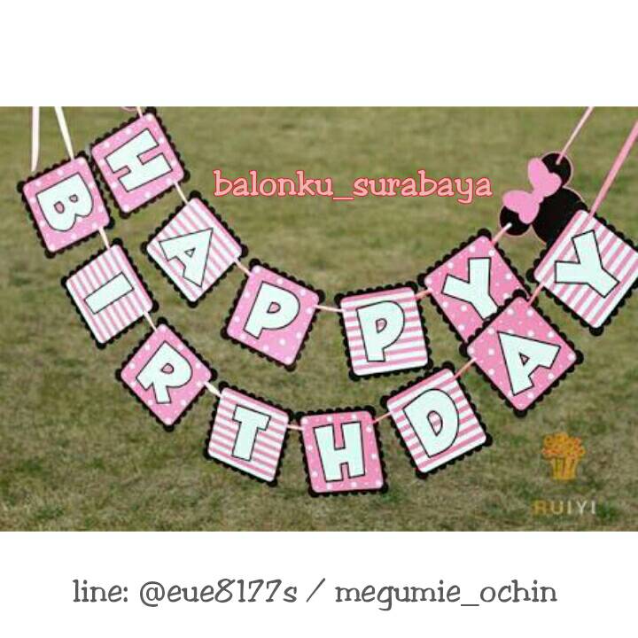 Bendera ulang tahun / Bunting flag happy birthday / Flag banner Minie Mouse persegi