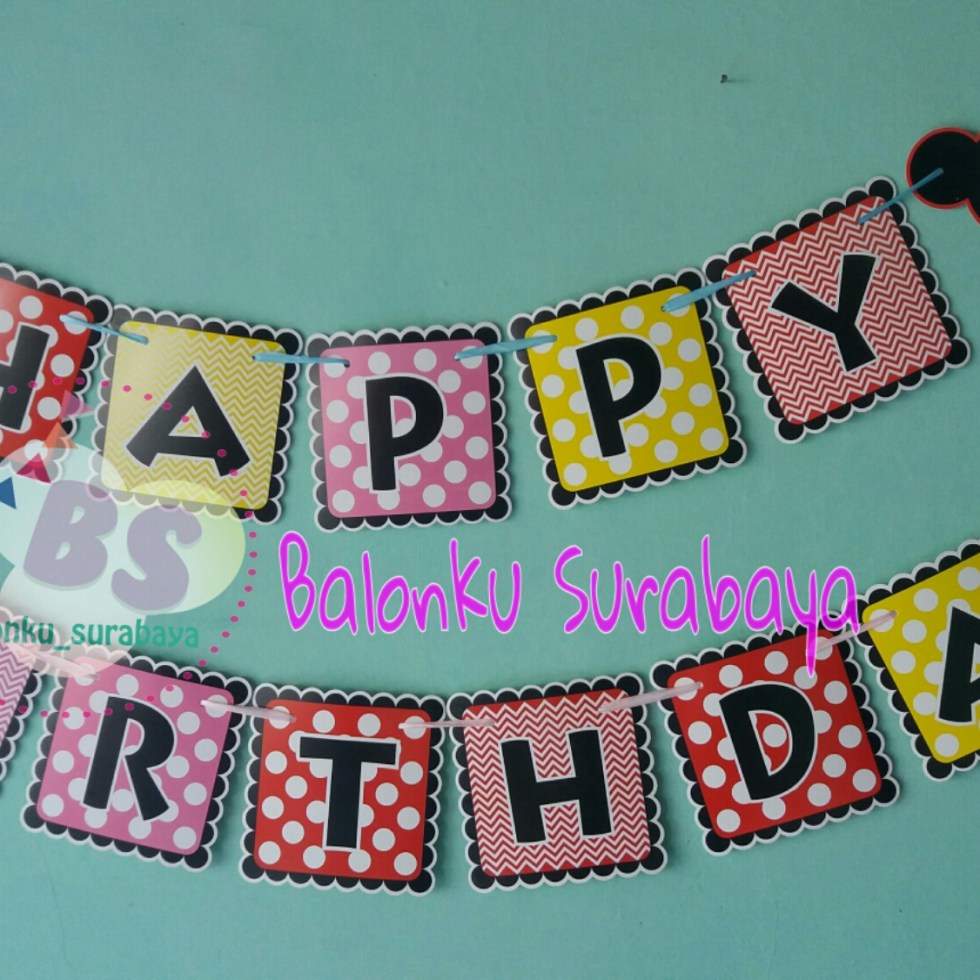 Bendera ulang tahun / Bunting flag happy birthday / Flag banner Kepala Mickey Mouse