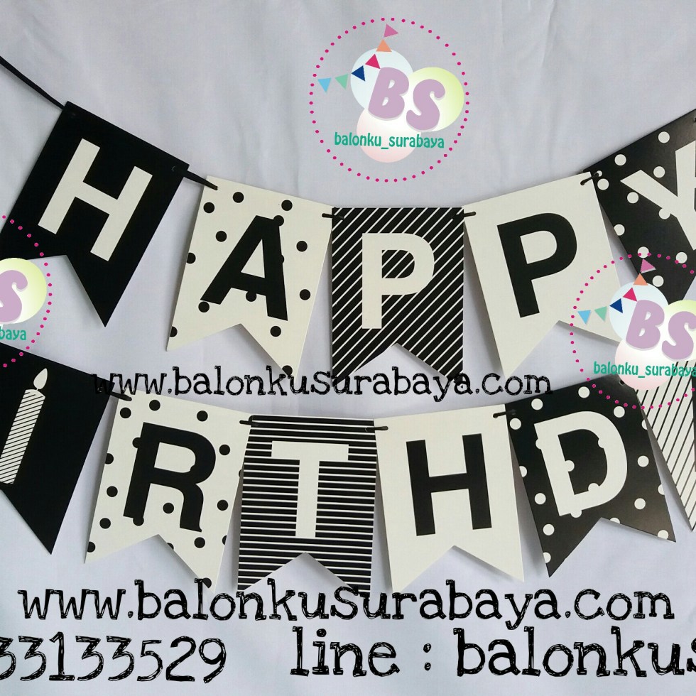 Bendera Ulang Tahun / Bunting Flag Happy Birthday / Flag Banner Segilima Hitam Putih Motif Campur.